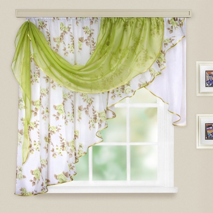 Комплект штор для кухни «Иллюзия», 300×150 см, цвет зелёный, принт микс