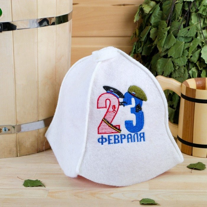 Шапка для бани «23 Февраля», войлок, белая