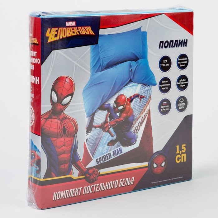 Постельное бельё 1.5 сп «Человек-Паук: Супергерой» 143×215 см, 150×214 см, 50×70 1 шт, поплин 125 г/м2 11