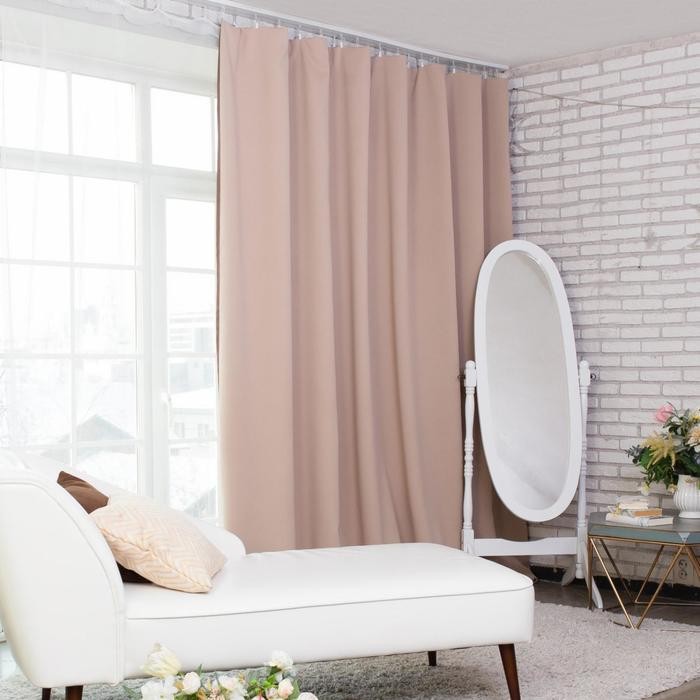 Штора портьерная Этель 130×300 см, двусторонний блэкаут, цвет бежевый, пл. 240 г/м2