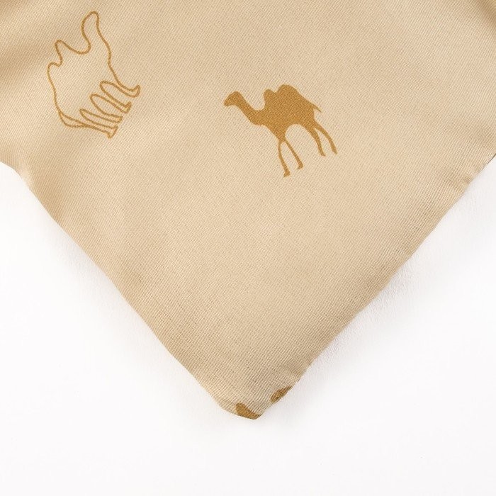 Чехол состоит из 100%-го полиэстера. Состав наполнителя: верблюжья шерсть 10%, полиэфирное волокно 90%.