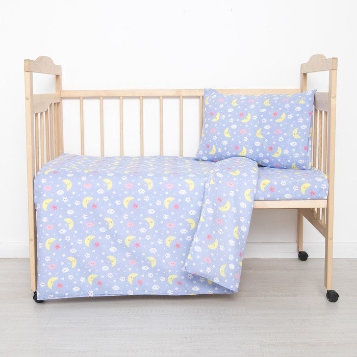 Постельное бельё детское «Спокойной ночи», цвет голубой, 112×147, 100×150, 40×60 1 шт, ситец/бязь, хл 100%
