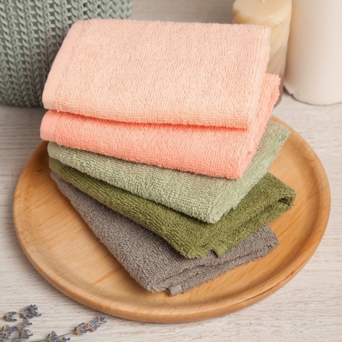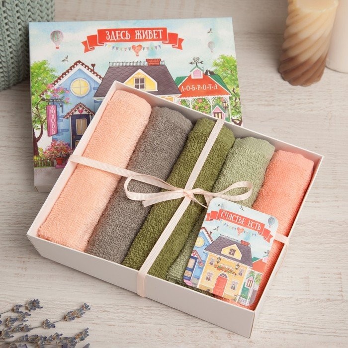 Набор махровых салфеток «Здесь живет счастье» 30×30 см -5шт