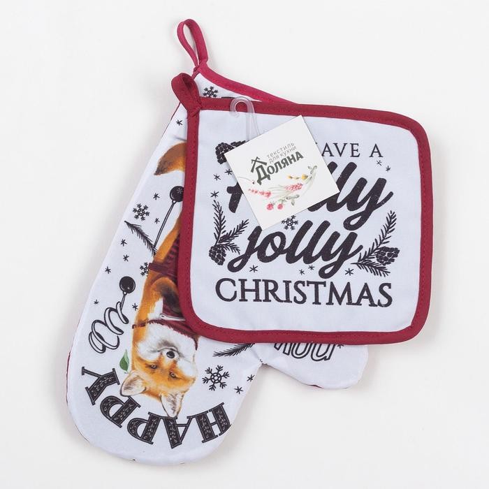 Новогодний набор кухонный Happy new taste: варежка-прихватка 20х28см, прихватка 17×17 35% хл,65% п/э