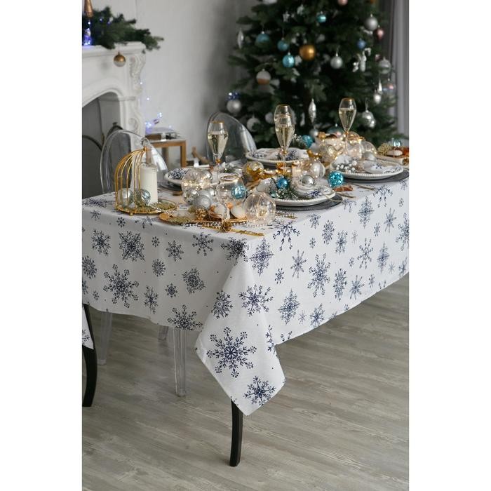 Скатерть Доляна «Новый год: Синие снежинки» 180×149 см, 100% хлопок, 164 г/м2