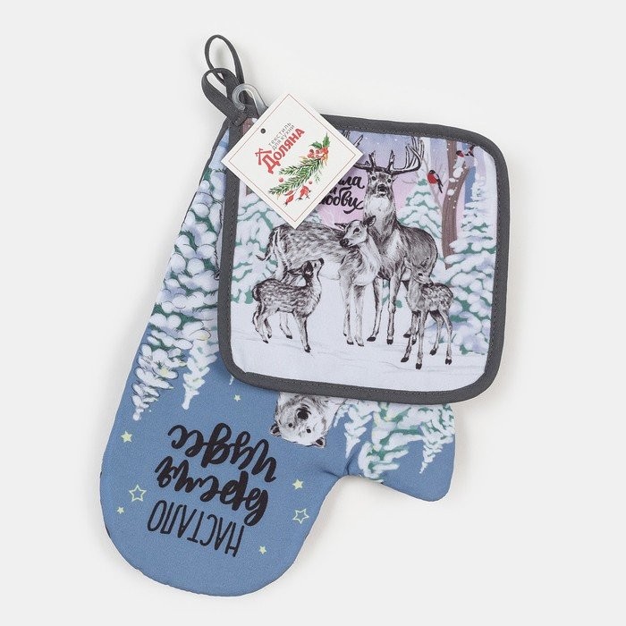 Набор кухонный «Время чудес» варежка-прихватка 20х28см, прихватка 17×17 35% хл,65% п/э