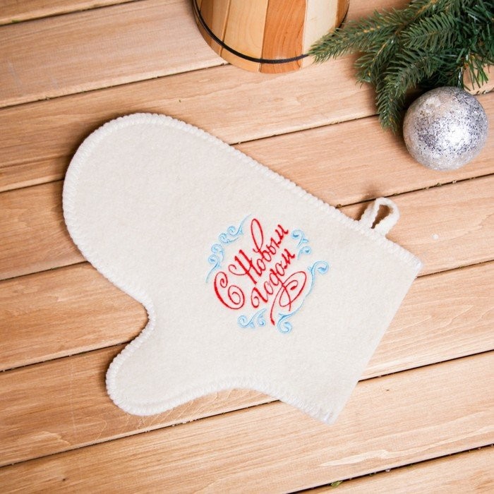 Рукавица для бани с вышивкой «С Новым Годом, с узорами»