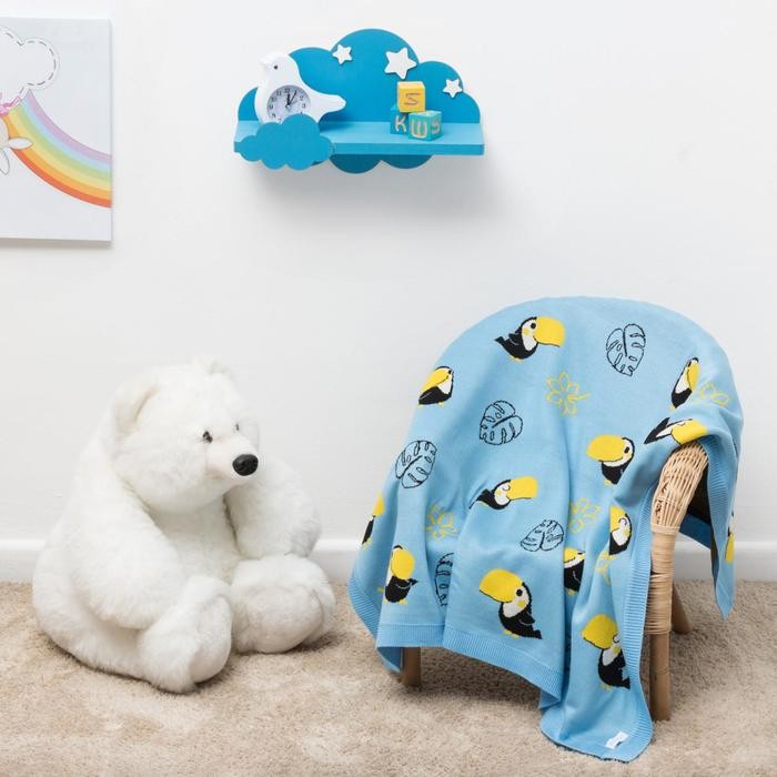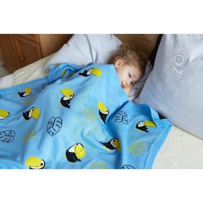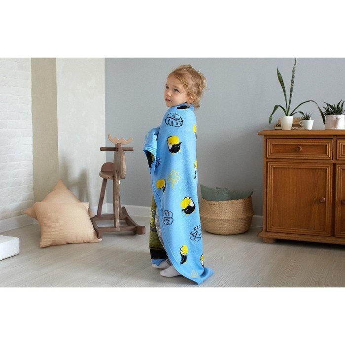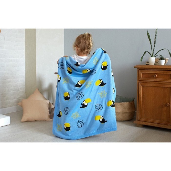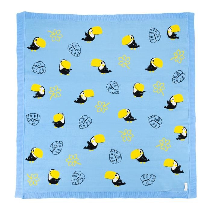 Вязаный плед Крошка Я «Туканы», размер 90×90 см, цвет голубой