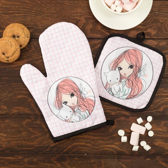 Кухонный набор (2 предмета) Этель LoveLife «Лея», прихватка 17×17 см, рукавичка 26×16 см, 100% п/э