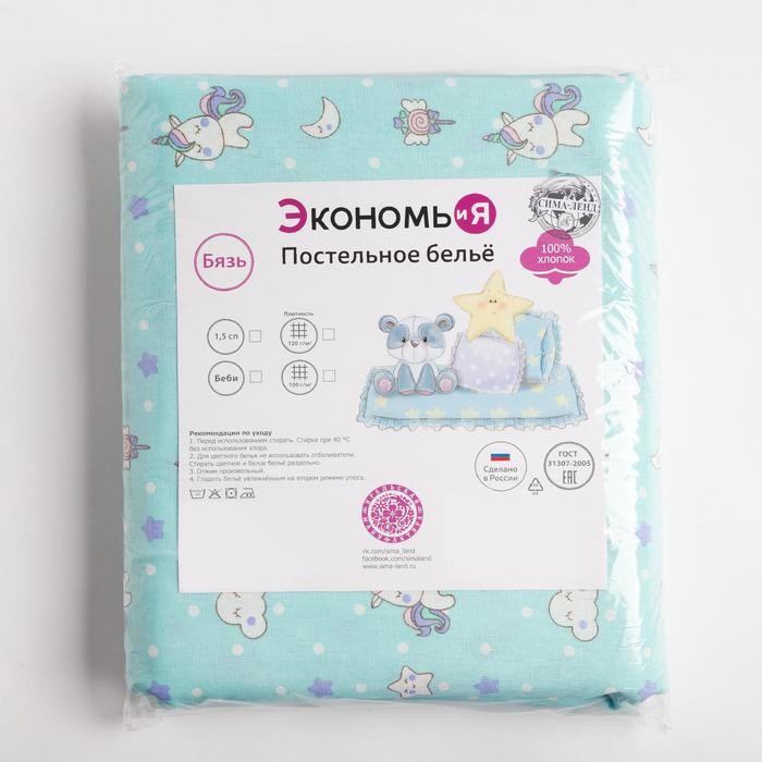 Детское постельное бельё Экономь и Я «Единорожки» 1,5 сп, цвет голубой, 145×210 см, 150×210 см, 50×70 см — 1 шт