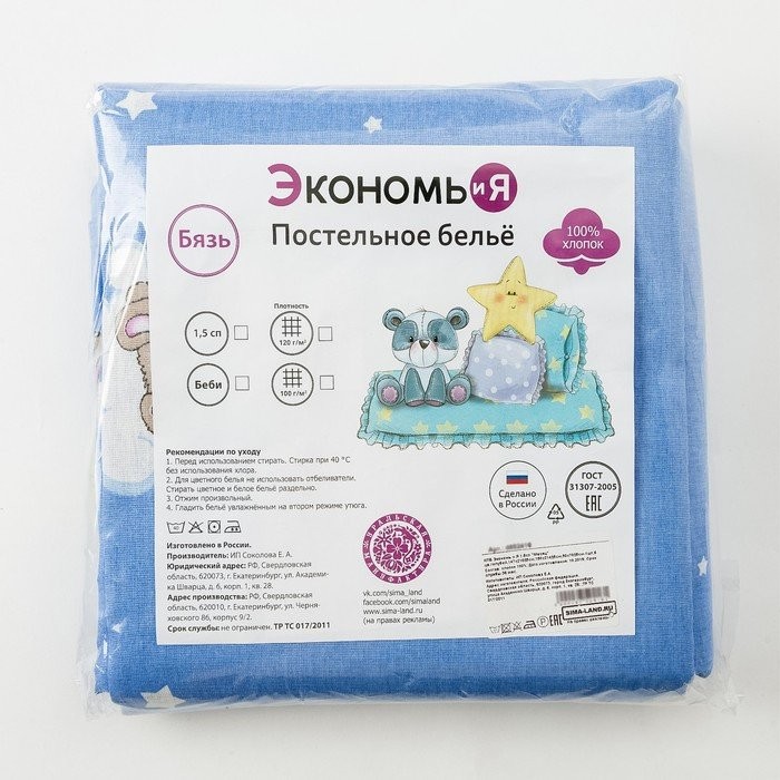 Детское постельное бельё Экономь и Я «Зайки» 1.5сп, цвет голубой, 147×210±5см, 150×214±5см, 70×70±5см — 1шт
