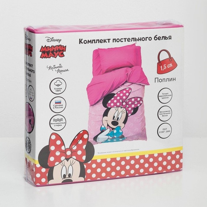 Детское постельное бельё 1,5 сп «Минни Маус» 143×215 см, 150×214 см, 50×70 см -1 шт., поплин 125 г/м2