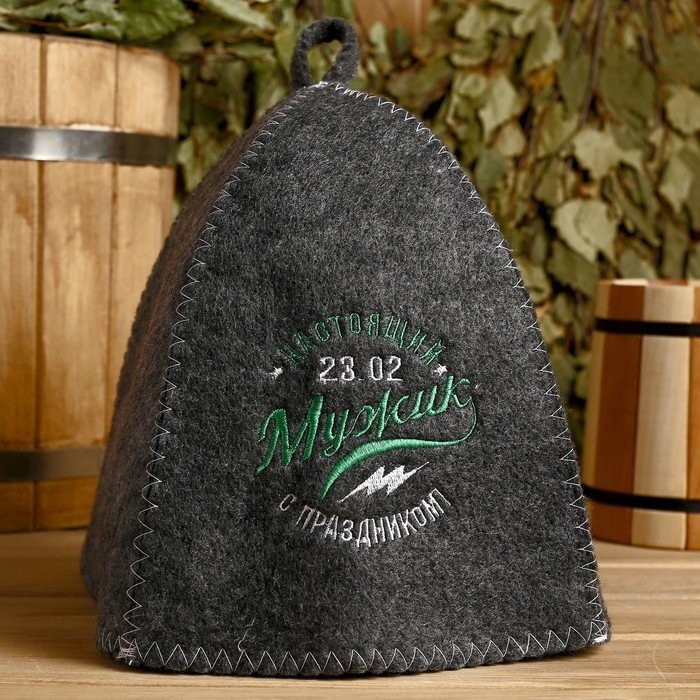 Шапка для бани с вышивкой «Настоящий мужик 23.02»