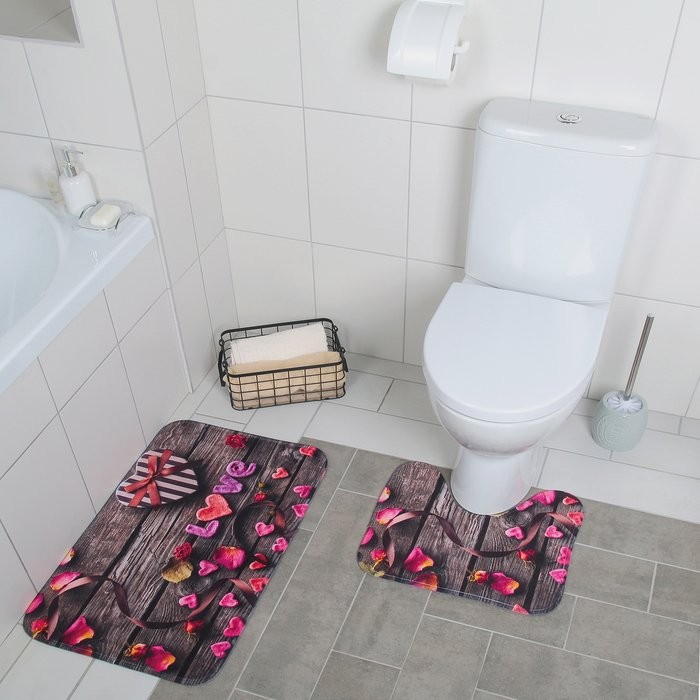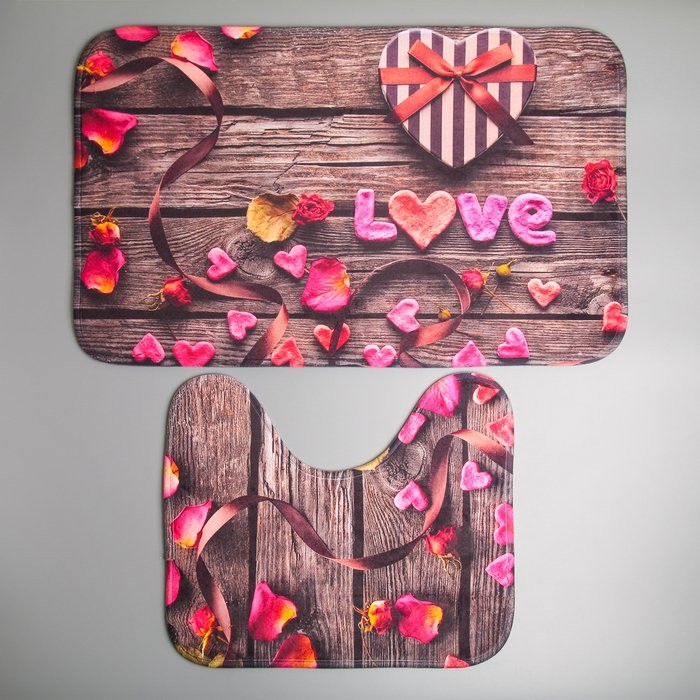 Набор ковриков для ванны и туалета Доляна «Ля мур», 2 шт: 40×45, 45×75 см