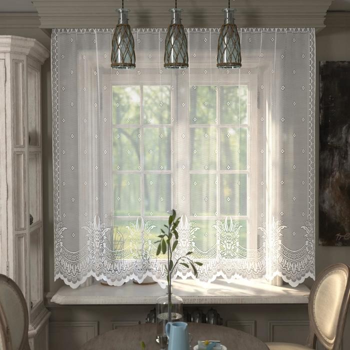 Тюль кухонная без шторной ленты, 210×165 см, белый, пэ 100%