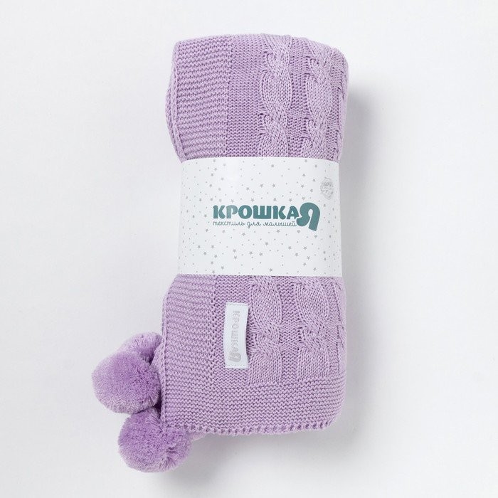 Вязаный плед Крошка Я Рисунок коса, 90×90 см, цвет сиреневый