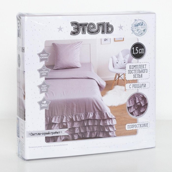 Постельное бельё Этель «Светло-серый графит» 1,5 сп 145×210±2 см, 150×210±3 см, 70×70±3 см, мако-сатин