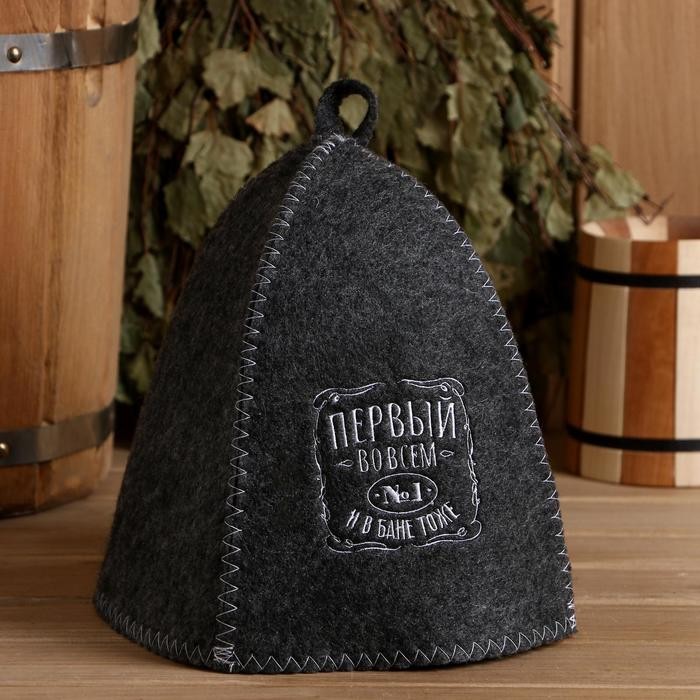 Шапка для бани с вышивкой «Первый во всем и в бане тоже»