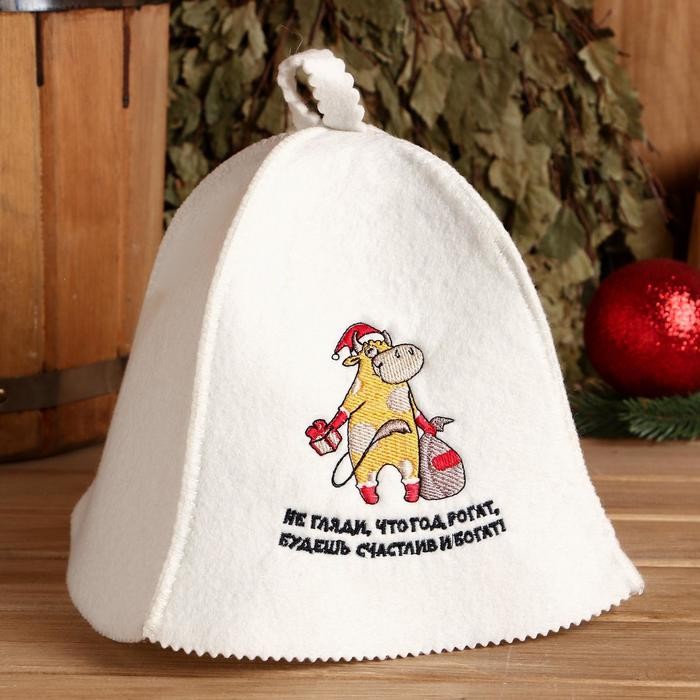 Шапка для бани «Не гляди, что год рогат….» фетр