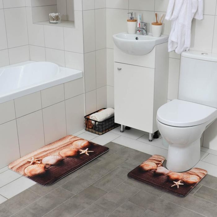 Набор ковриков для ванны и туалета Доляна «Ракушки», 2 шт: 45×70, 39×45 см