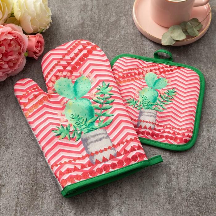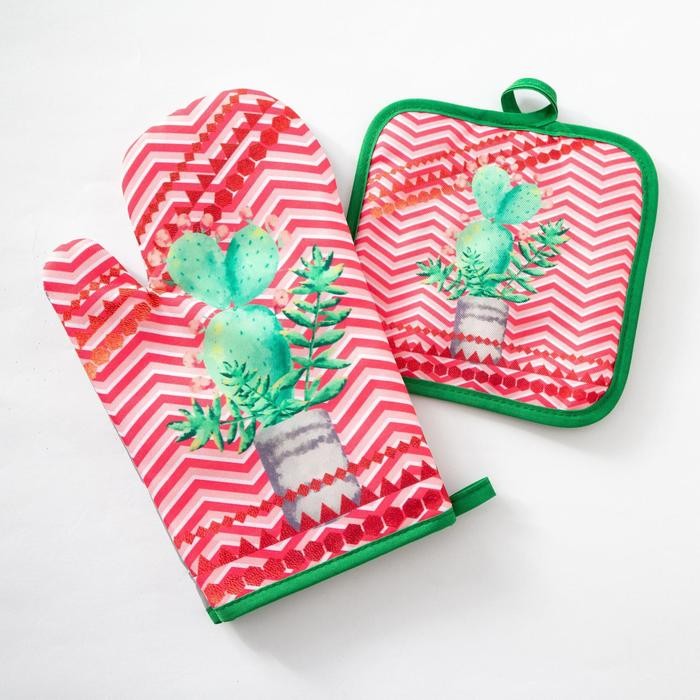 Кухонный набор Доляна «Кактус» прихватка 17×17 см, рукавица 26×16 см