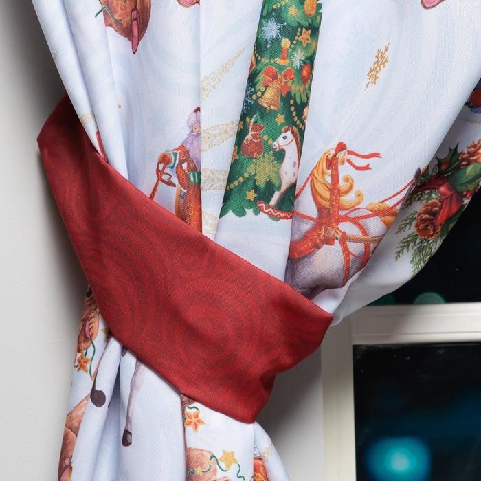 Комплект штор для кухни с подхватами «Новогодняя сказка» 145х180см-2 шт., габардин