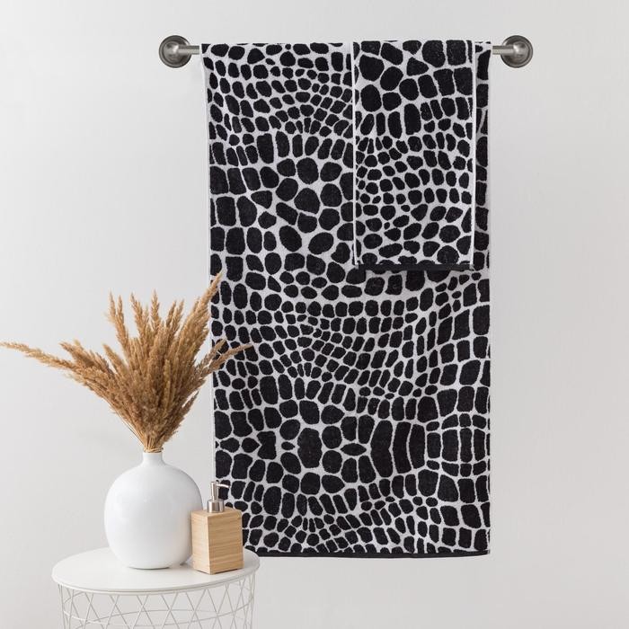 Полотенце махровое Этель ЧБ «Змея», пестроткань, 30×60 см
