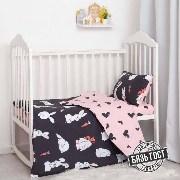 Постельное бельё детское Крошка Я «Зайчики» и сердечки», 147×112 см, 60×120 + 20 см, 40×60 см