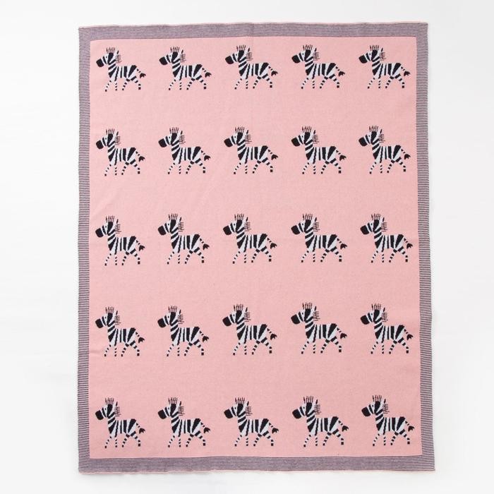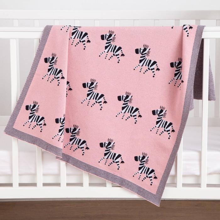 Плед вязаный Крошка Я «Зебра» цвет розовый, 80×100 см