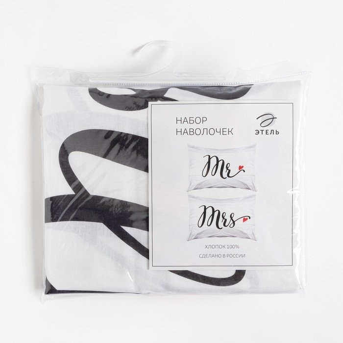 Комплект наволочек «Этель» Mr&Mrs 50×70 см — 2 шт, 100% хлопок, бязь