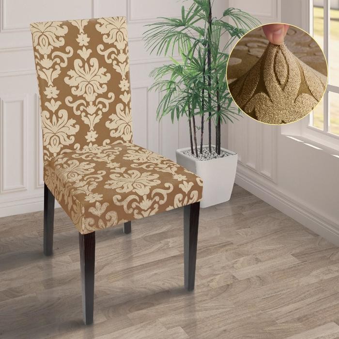Чехол на стул трикотаж жаккард, цет светло коричневый
