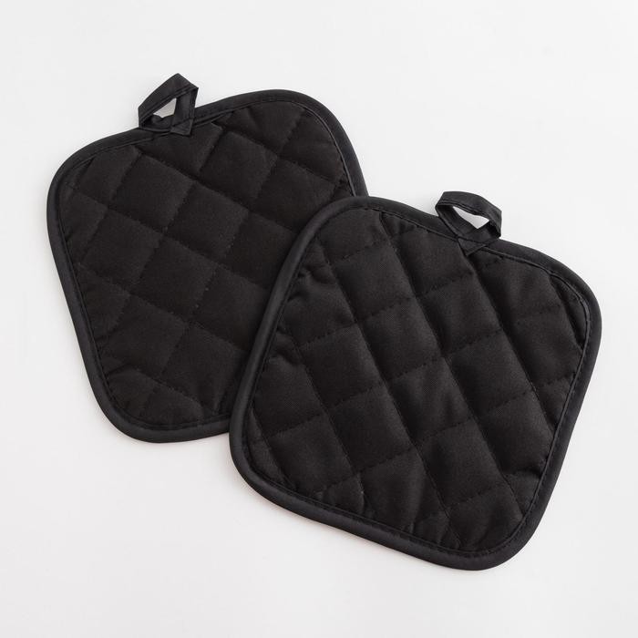 Кухонный набор (2 предмета) Доляна «Клетка», цвет черный, прихватка 17×17 см — 2 шт, 100% п/э