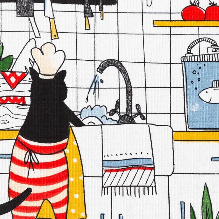 Полотенце кухонное Доляна «Котик на кухне» 35×60 см, 100% хл, 160г/м2
