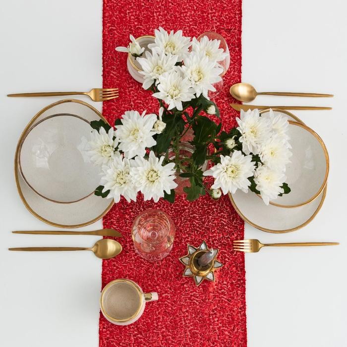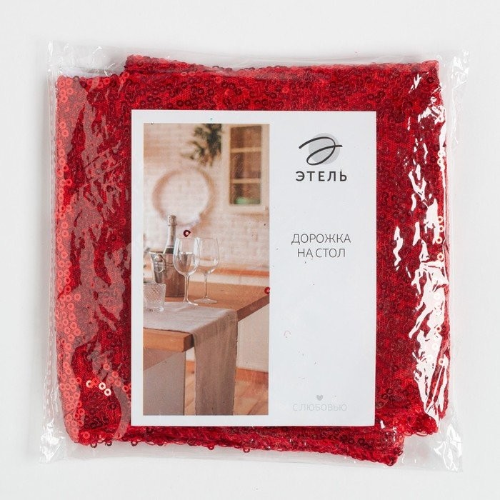 Дорожка с пайетками на стол, цв.красный, 30*120 см