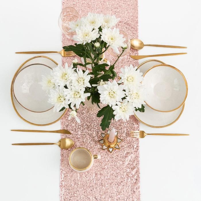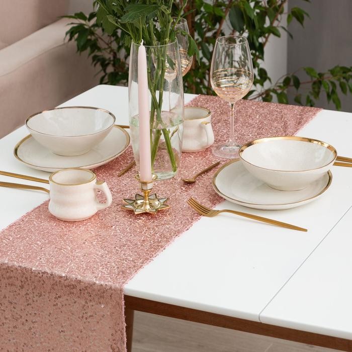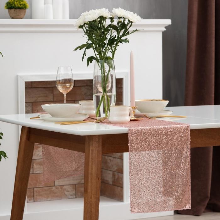 Дорожка с пайетками на стол, цв.пудра, 30*120 см
