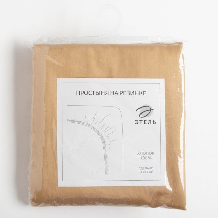 Простыня на резинке Этель 140*200*25 см, цв.песчаный, 100% хлопок, мако-сатин, 125 г/м²